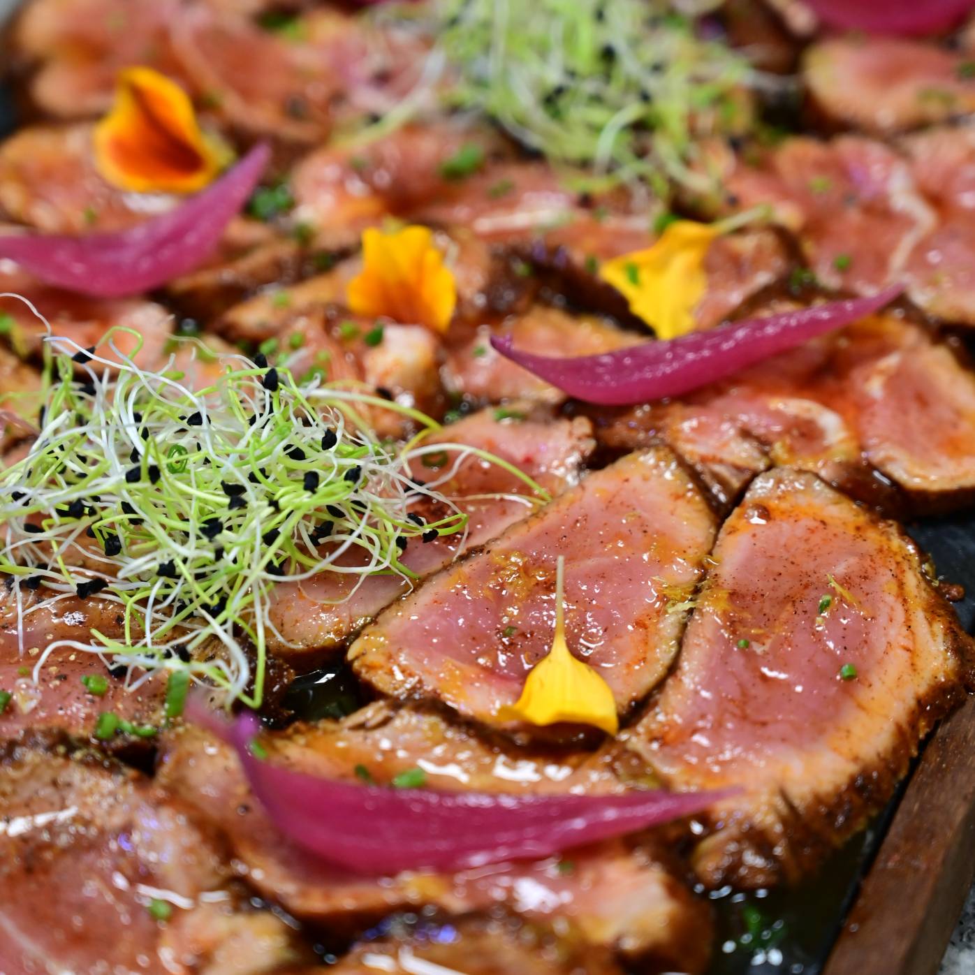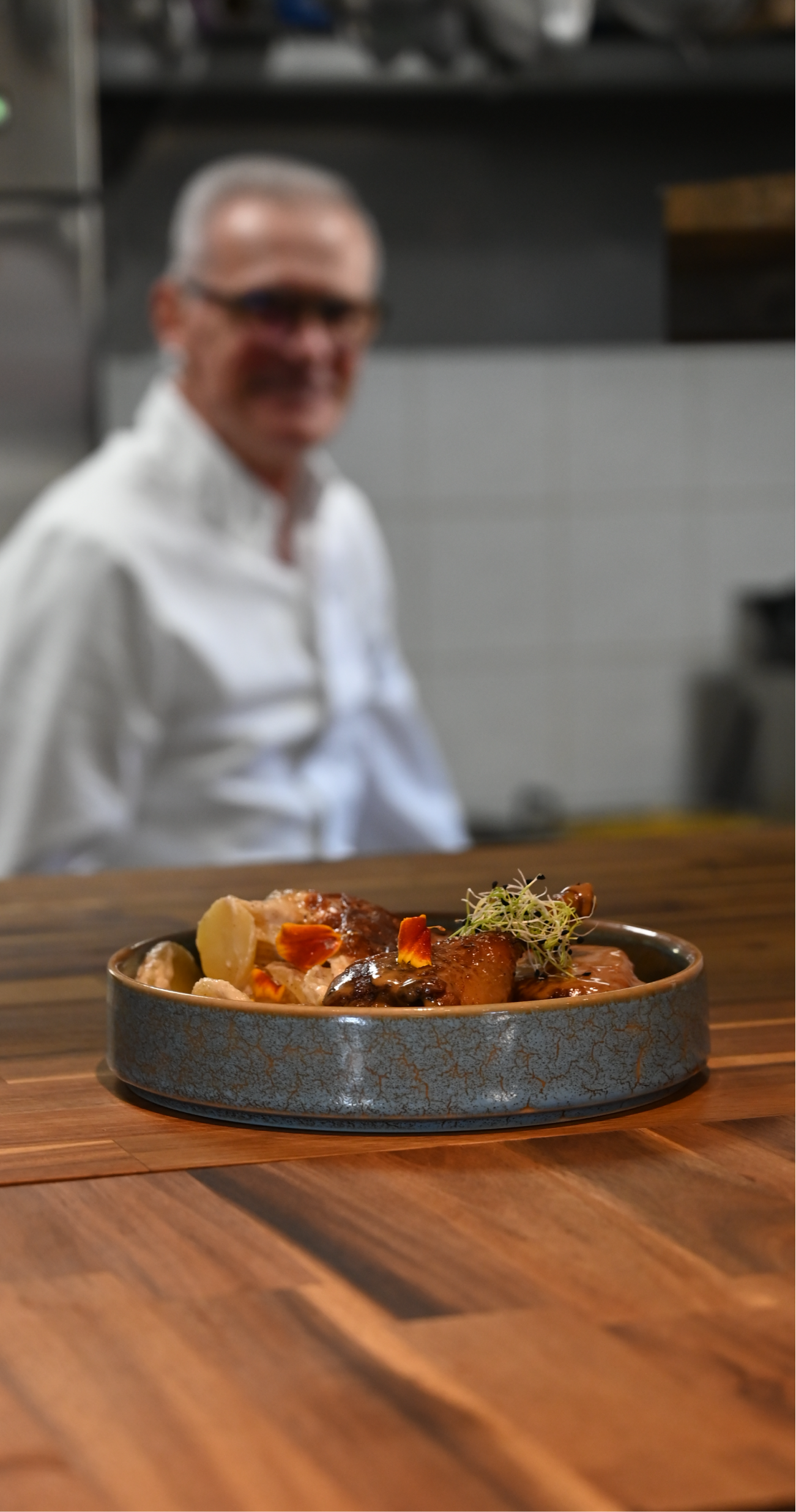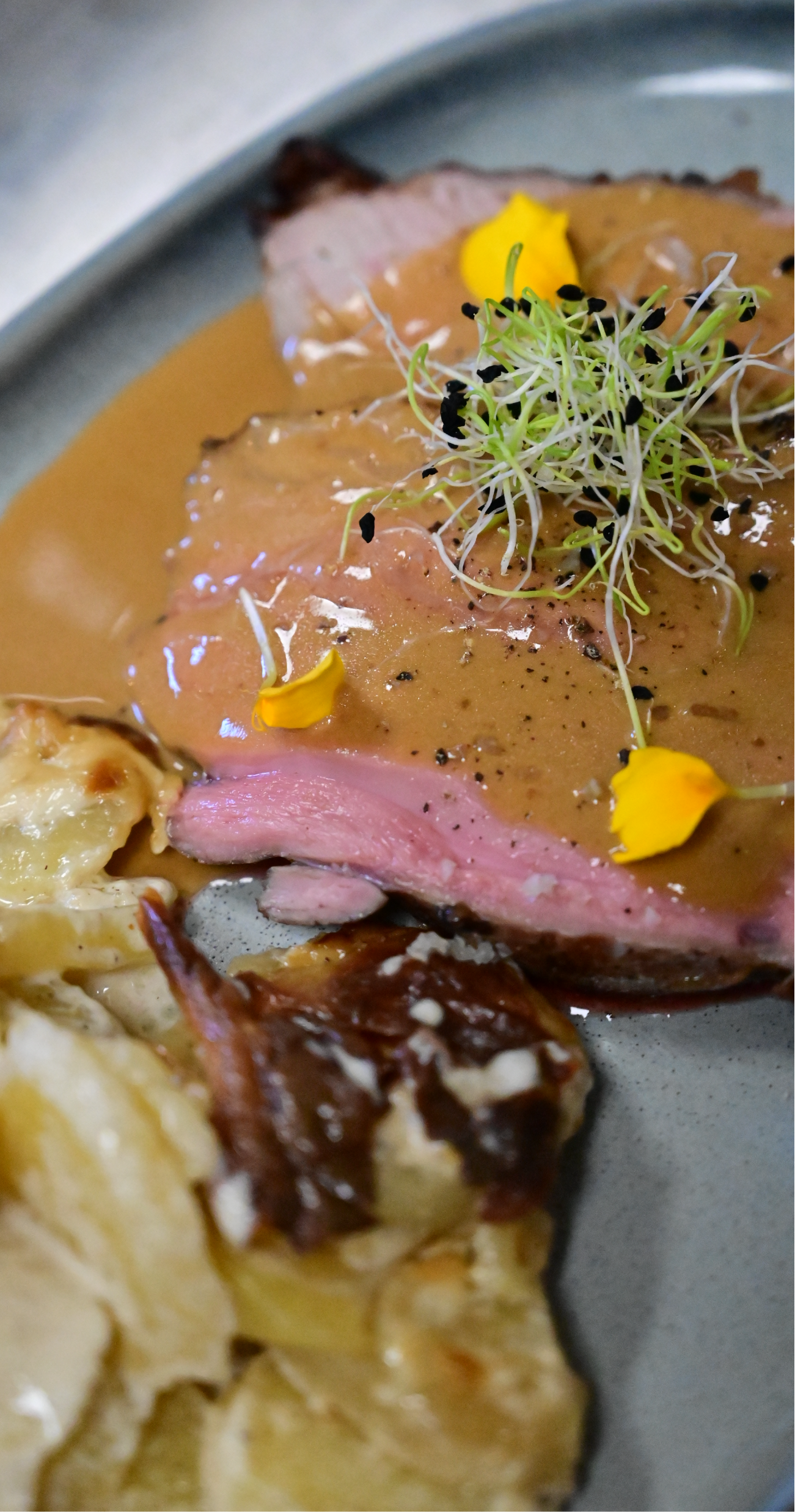 Notre cuisine française à partager s’inspire autant des braises que de l’amitié entre Théo et Boris. Ici, les produits locaux sont privilégiés : circuits courts, producteurs à moins de 10 minutes… sauf pour quelques pièces d’exception comme la Black Angus. Tables en rondins, mélange de moderne et d’ancien, ambiance chaleureuse : tout est pensé pour une expérience à la fois authentique et festive.